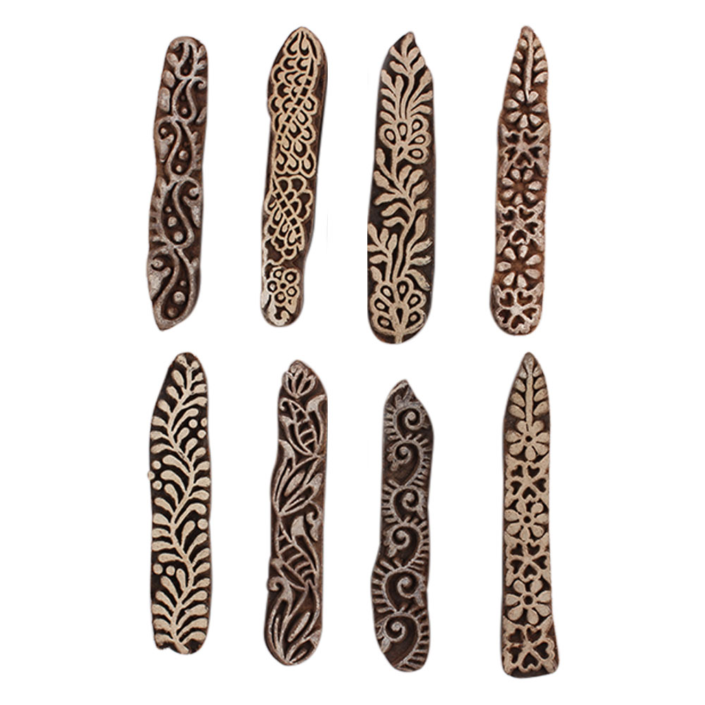 Set of 8 Piece New Mix Wooden Printing Block. Ideal for Using on Fabric, Paper, Canvas, etc. These Blocks can be use to Print with Oil Colors, Fabric Colors, Water Colors, Acrylic Colors and Vegetable Colors.