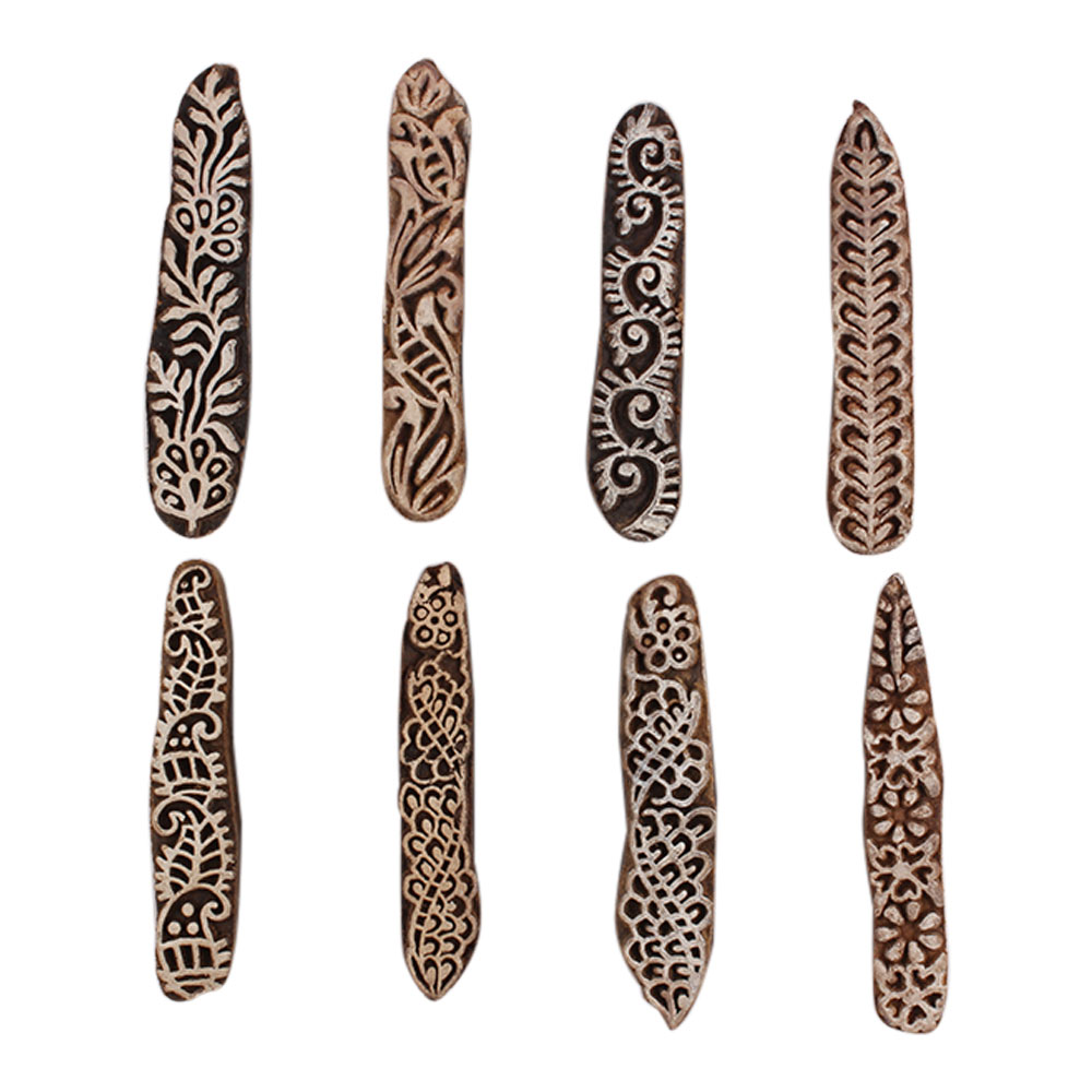 Set of 8 Piece New Mix Wooden Printing Block. Ideal for Using on Fabric, Paper, Canvas, etc. These Blocks can be use to Print with Oil Colors, Fabric Colors, Water Colors, Acrylic Colors and Vegetable Colors.