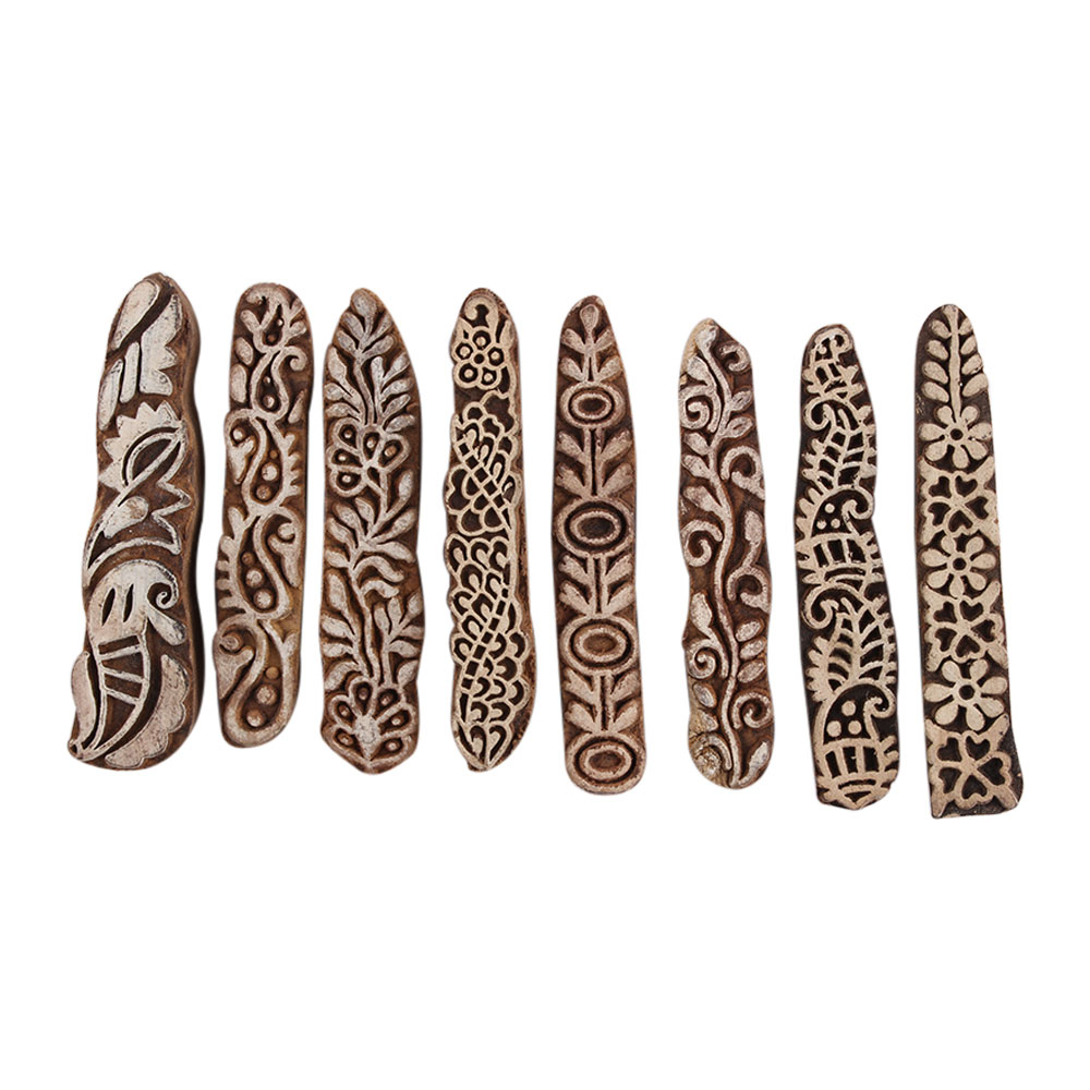 Set of 8 Piece New Mix Wooden Printing Block. Ideal for Using on Fabric, Paper, Canvas, etc. These Blocks can be use to Print with Oil Colors, Fabric Colors, Water Colors, Acrylic Colors and Vegetable Colors.