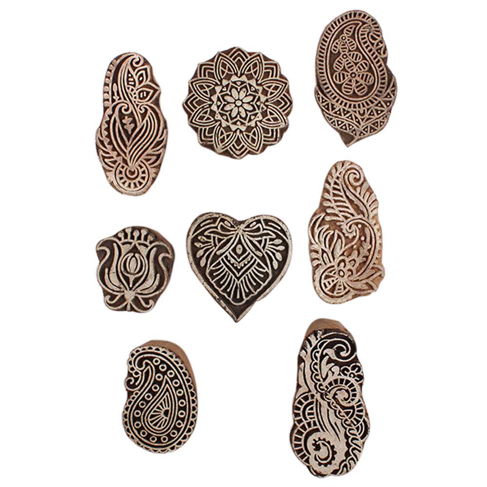 Set of 8 Piece New Mix Wooden Printing Block. Ideal for Using on Fabric, Paper, Canvas, etc. These Blocks can be use to Print with Oil Colors, Fabric Colors, Water Colors, Acrylic Colors and Vegetable Colors.