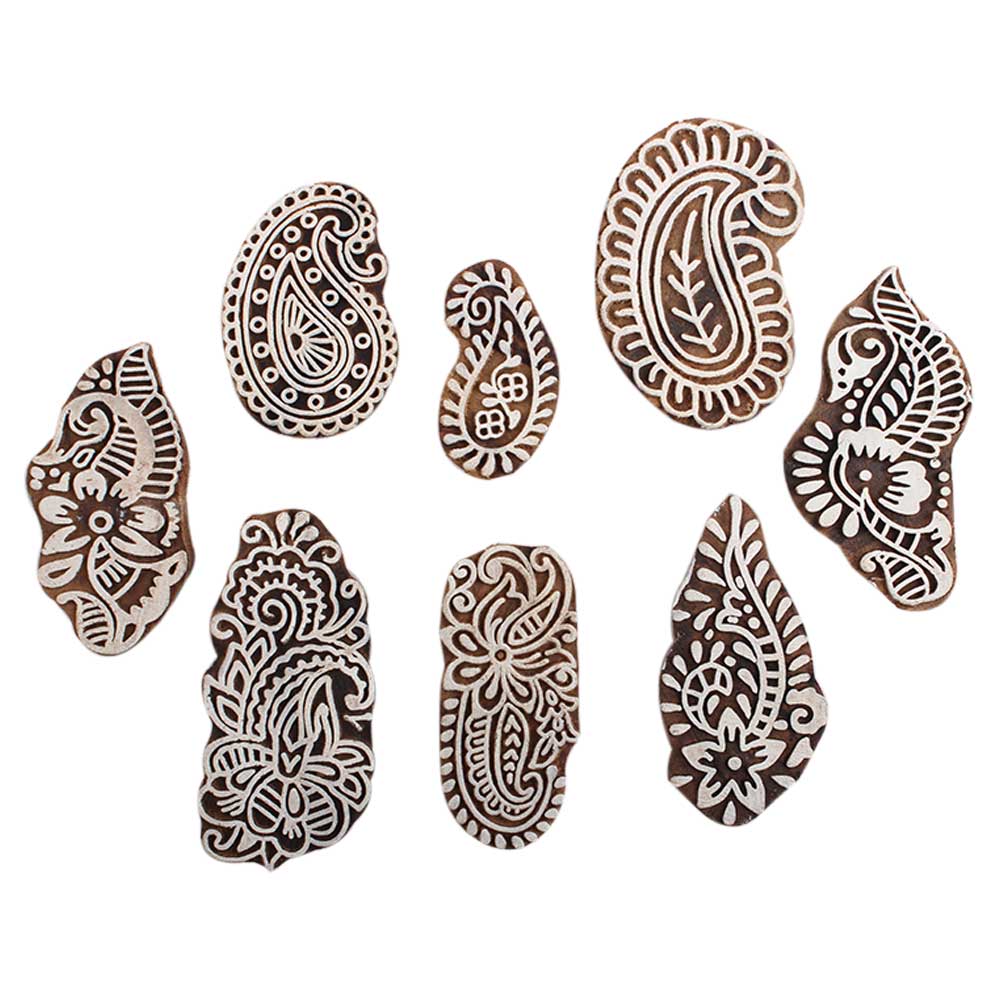 Set of 8 Piece New Mix Wooden Printing Block. Ideal for Using on Fabric, Paper, Canvas, etc. These Blocks can be use to Print with Oil Colors, Fabric Colors, Water Colors, Acrylic Colors and Vegetable Colors.