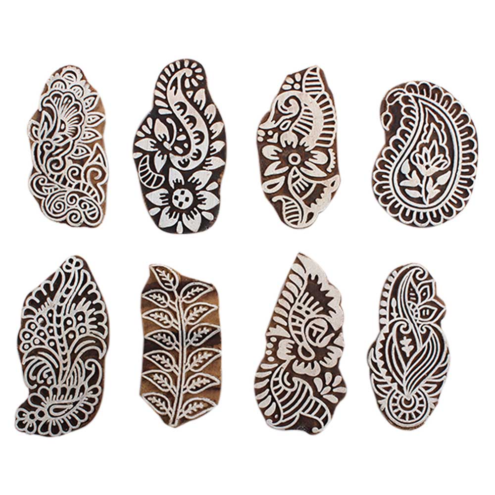 Set of 8 Piece New Mix Wooden Printing Block. Ideal for Using on Fabric, Paper, Canvas, etc. These Blocks can be use to Print with Oil Colors, Fabric Colors, Water Colors, Acrylic Colors and Vegetable Colors.