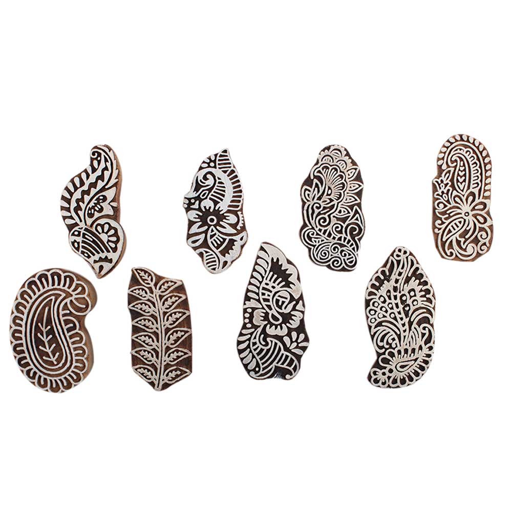 Set of 8 Piece New Mix Wooden Printing Block. Ideal for Using on Fabric, Paper, Canvas, etc. These Blocks can be use to Print with Oil Colors, Fabric Colors, Water Colors, Acrylic Colors and Vegetable Colors.