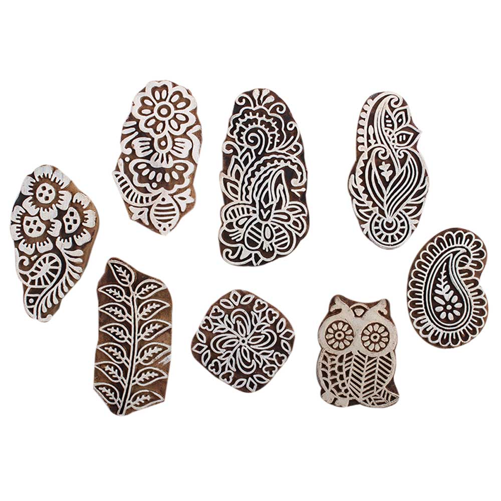 Set of 8 Piece New Mix Wooden Printing Block. Ideal for Using on Fabric, Paper, Canvas, etc. These Blocks can be use to Print with Oil Colors, Fabric Colors, Water Colors, Acrylic Colors and Vegetable Colors.
