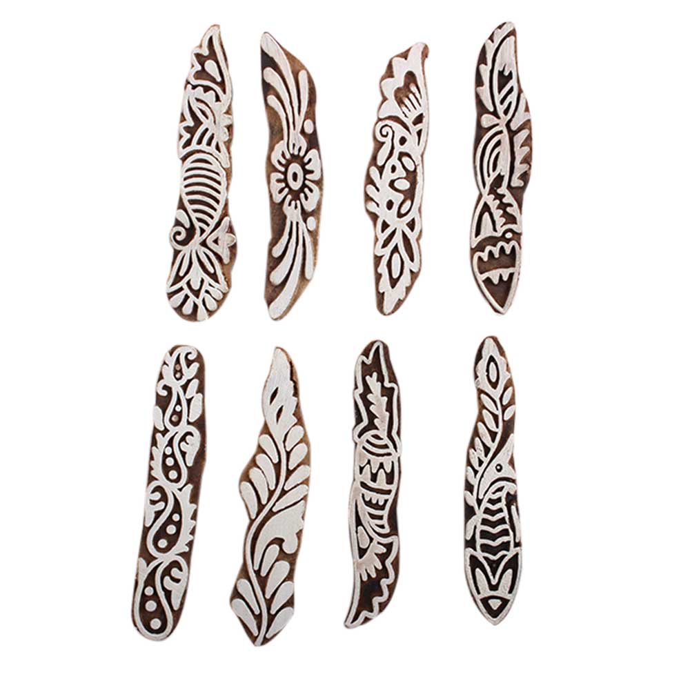 Set of 8 Piece New Mix Wooden Printing Block. Ideal for Using on Fabric, Paper, Canvas, etc. These Blocks can be use to Print with Oil Colors, Fabric Colors, Water Colors, Acrylic Colors and Vegetable Colors.