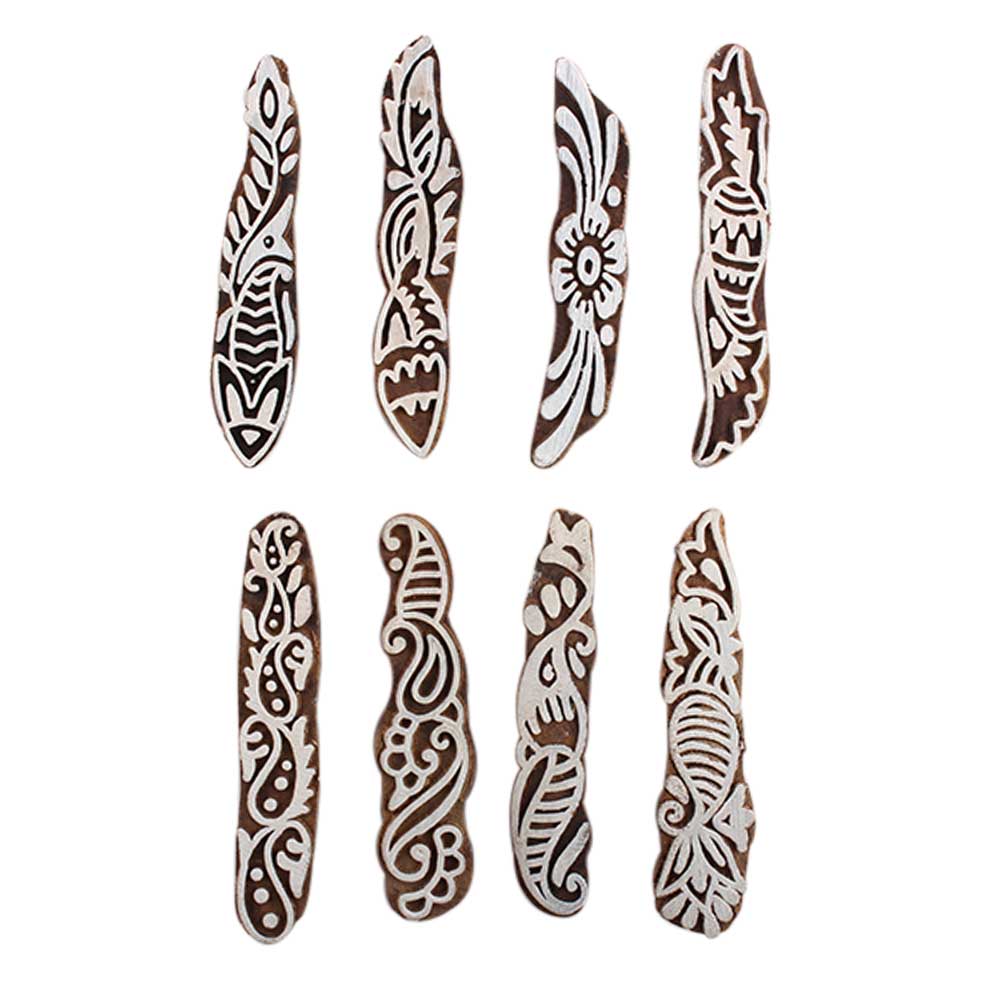 Set of 8 Piece New Mix Wooden Printing Block. Ideal for Using on Fabric, Paper, Canvas, etc. These Blocks can be use to Print with Oil Colors, Fabric Colors, Water Colors, Acrylic Colors and Vegetable Colors.
