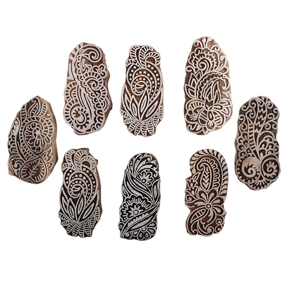 Set of 8 Piece New Mix Wooden Printing Block. Ideal for Using on Fabric, Paper, Canvas, etc. These Blocks can be use to Print with Oil Colors, Fabric Colors, Water Colors, Acrylic Colors and Vegetable Colors.