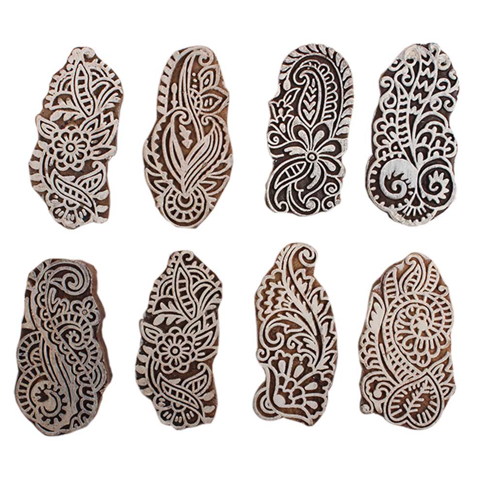 Set of 8 Piece New Mix Wooden Printing Block. Ideal for Using on Fabric, Paper, Canvas, etc. These Blocks can be use to Print with Oil Colors, Fabric Colors, Water Colors, Acrylic Colors and Vegetable Colors.