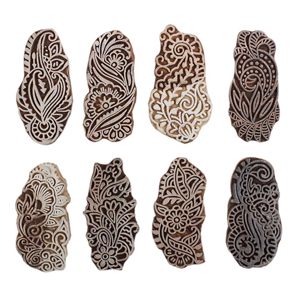Set of 8 Piece New Mix Wooden Printing Block. Ideal for Using on Fabric, Paper, Canvas, etc. These Blocks can be use to Print with Oil Colors, Fabric Colors, Water Colors, Acrylic Colors and Vegetable Colors.