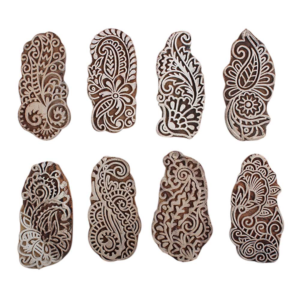 Set of 8 Piece New Mix Wooden Printing Block. Ideal for Using on Fabric, Paper, Canvas, etc. These Blocks can be use to Print with Oil Colors, Fabric Colors, Water Colors, Acrylic Colors and Vegetable Colors.