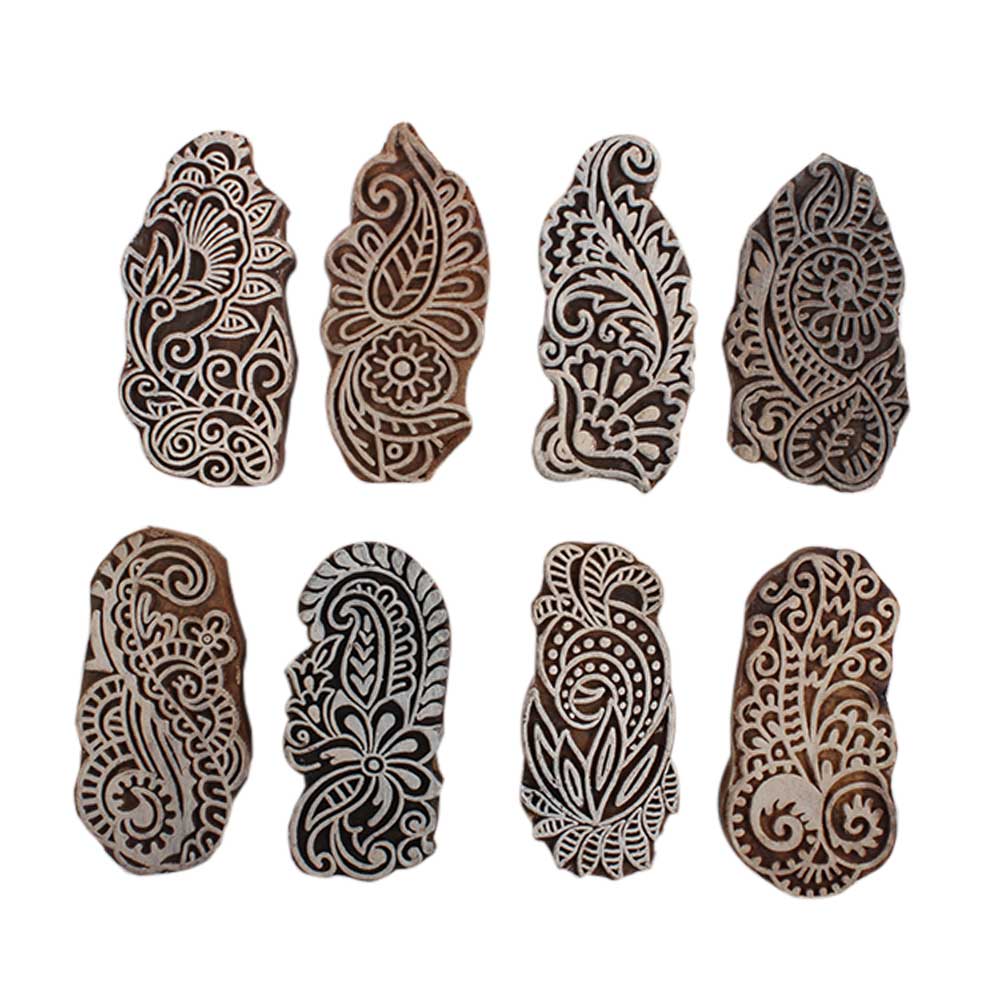 Set of 8 Piece New Mix Wooden Printing Block. Ideal for Using on Fabric, Paper, Canvas, etc. These Blocks can be use to Print with Oil Colors, Fabric Colors, Water Colors, Acrylic Colors and Vegetable Colors.