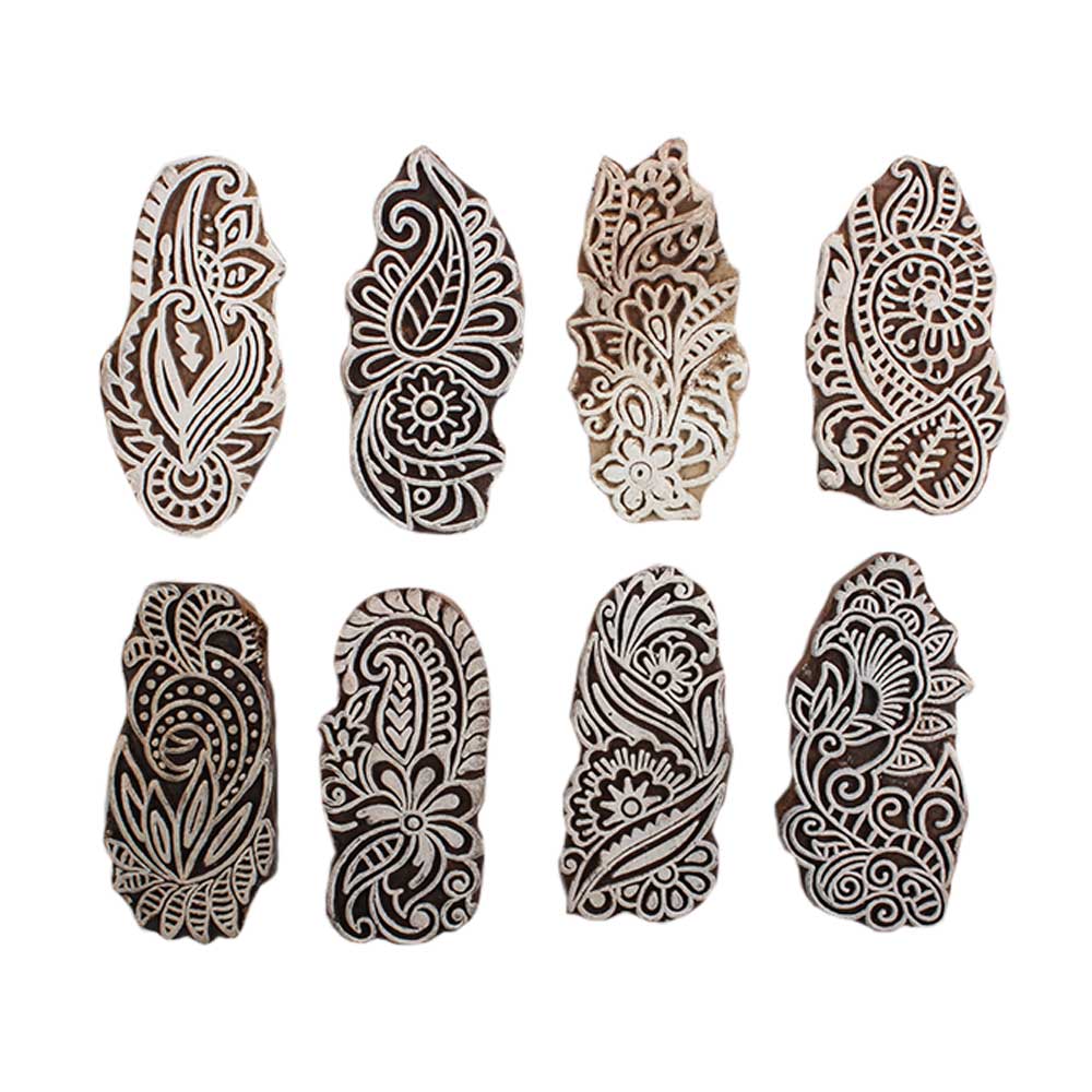 Set of 8 Piece New Mix Wooden Printing Block. Ideal for Using on Fabric, Paper, Canvas, etc. These Blocks can be use to Print with Oil Colors, Fabric Colors, Water Colors, Acrylic Colors and Vegetable Colors.