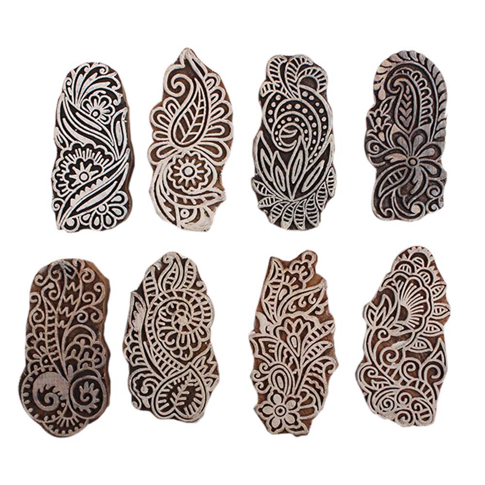 Set of 8 Piece New Mix Wooden Printing Block. Ideal for Using on Fabric, Paper, Canvas, etc. These Blocks can be use to Print with Oil Colors, Fabric Colors, Water Colors, Acrylic Colors and Vegetable Colors.