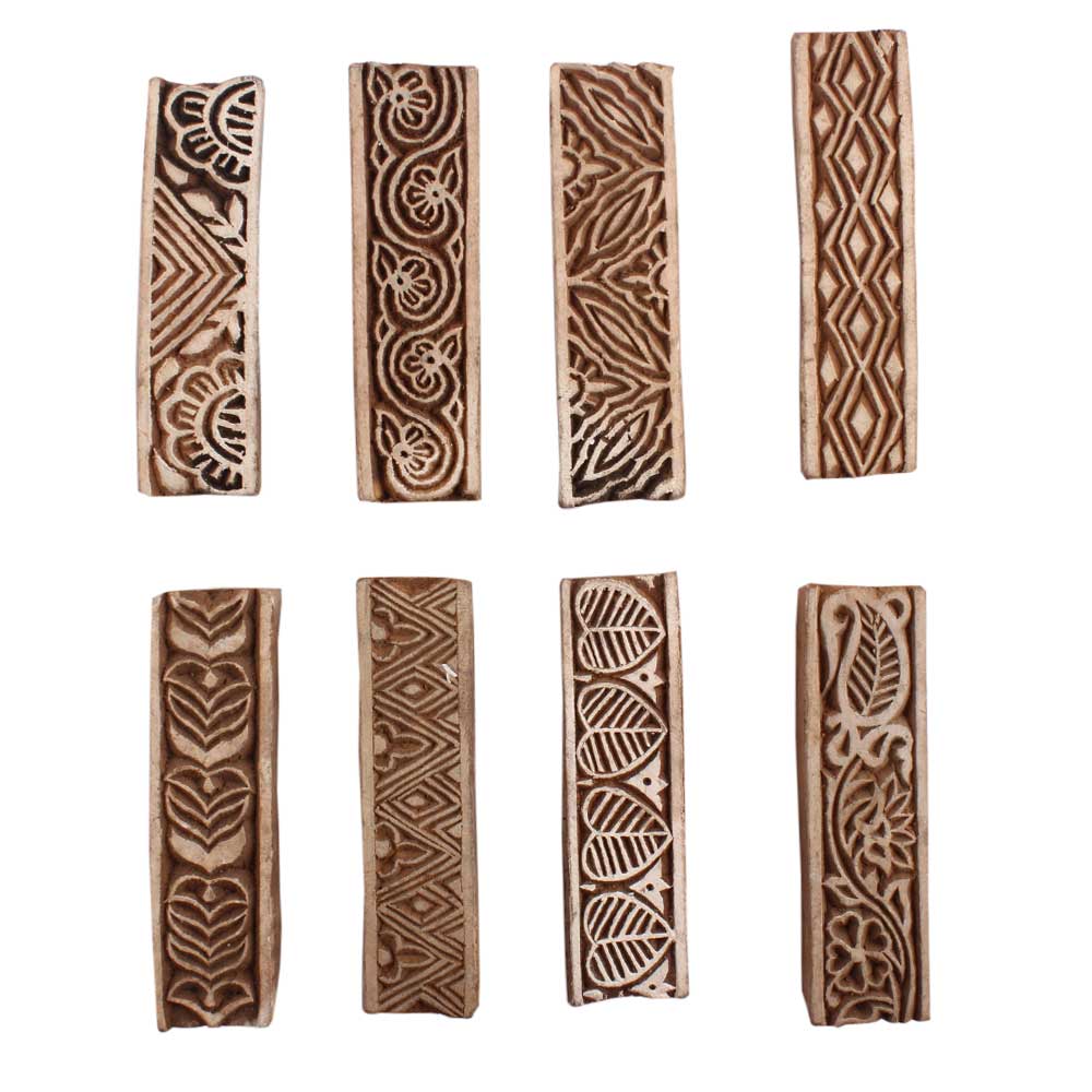 Set of 8 Piece New Mix Wooden Printing Block. Ideal for Using on Fabric, Paper, Canvas, etc. These Blocks can be use to Print with Oil Colors, Fabric Colors, Water Colors, Acrylic Colors and Vegetable Colors.