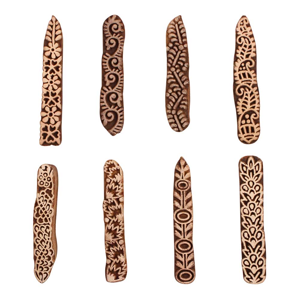 Set of 8 Piece New Mix Wooden Printing Block. Ideal for Using on Fabric, Paper, Canvas, etc. These Blocks can be use to Print with Oil Colors, Fabric Colors, Water Colors, Acrylic Colors and Vegetable Colors.