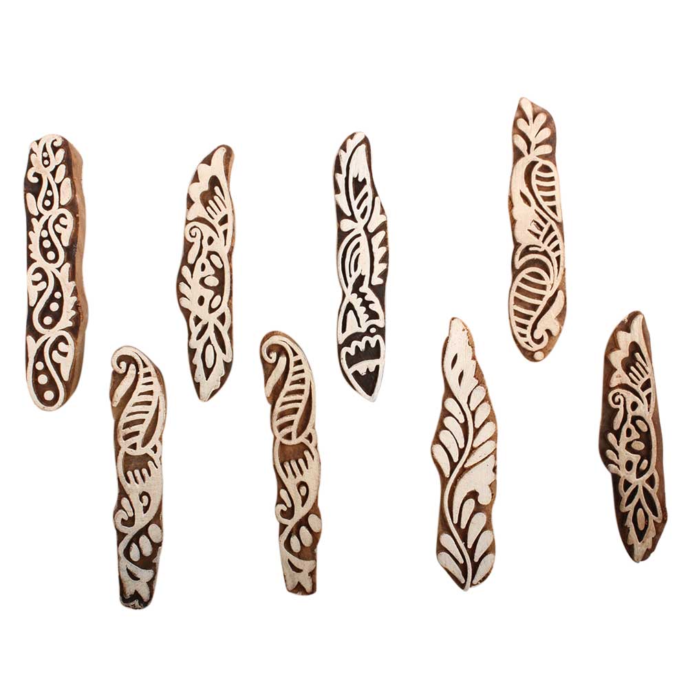 Set of 8 Piece New Mix Wooden Printing Block. Ideal for Using on Fabric, Paper, Canvas, etc. These Blocks can be use to Print with Oil Colors, Fabric Colors, Water Colors, Acrylic Colors and Vegetable Colors.