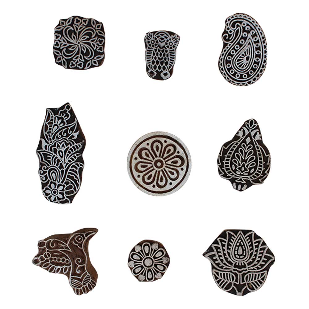 Set of 9 Piece New Mix Wooden Printing Block. Ideal for Using on Fabric, Paper, Canvas, etc. These Blocks can be use to Print with Oil Colors, Fabric Colors, Water Colors, Acrylic Colors and Vegetable Colors.