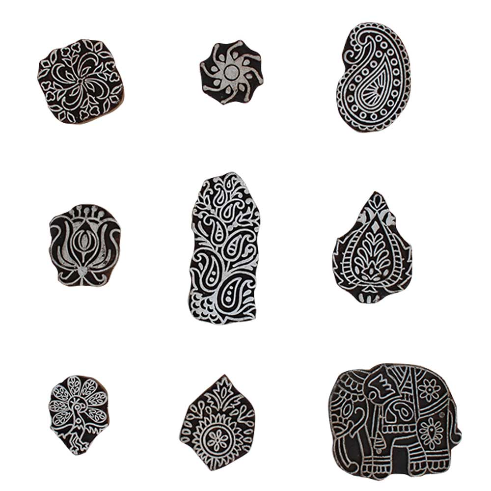 Set of 9 Piece New Mix Wooden Printing Block. Ideal for Using on Fabric, Paper, Canvas, etc. These Blocks can be use to Print with Oil Colors, Fabric Colors, Water Colors, Acrylic Colors and Vegetable Colors.