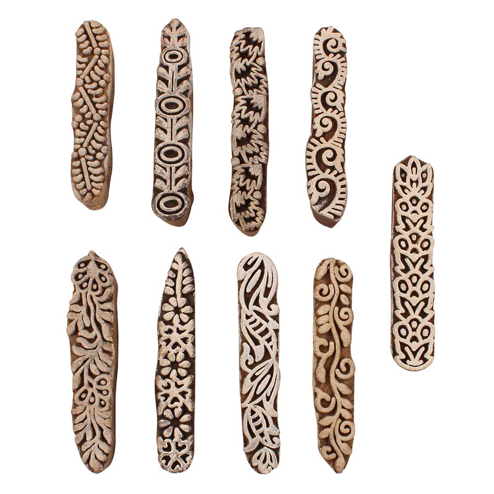 Set of 9 Piece New Mix Wooden Printing Blocks. Ideal for use on Fabric, Paper, Canvas, etc. These Blocks can be use to Print with Oil Colors, Fabric Colors, Water Colors, Acrylic Colors and Vegetable Colors.