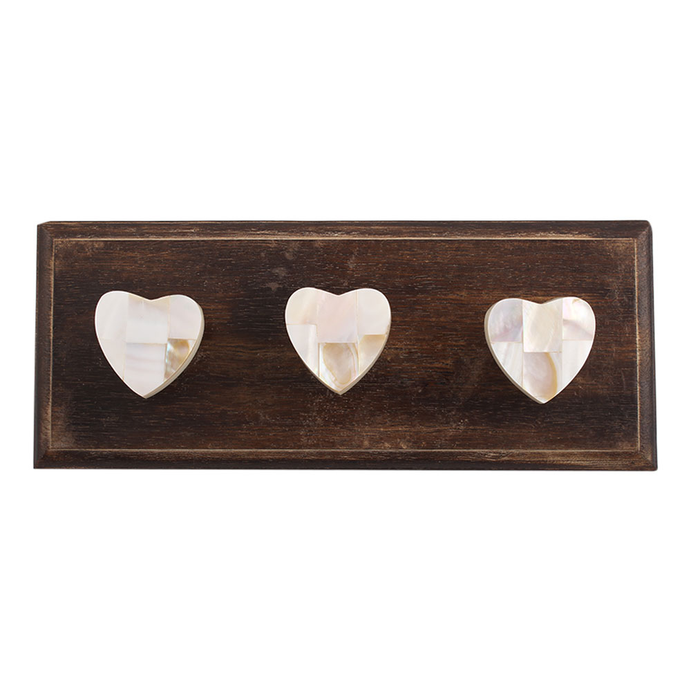 Shell and Resin Heart Wooden Hooks. A Perfect Complement to the Soft Tone of the Wood are these White Traditional Hat & Coat Hook Made of Genuine Porcelain and Brass. It can be use to Hang Jewellery, Leashes, Towels, Scarves, Light Weight Sweaters, Caps Etc.