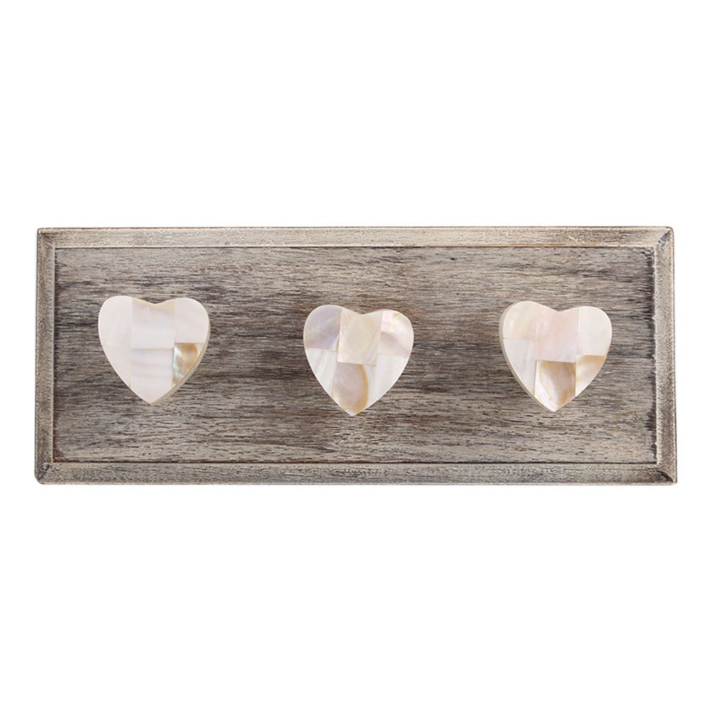 Shell and Resin Heart Wooden Hooks. A Perfect Complement to the Soft Tone of the Wood are these White Traditional Hat & Coat Hook Made of Genuine Porcelain and Brass. It can be use to Hang Jewellery, Leashes, Towels, Scarves, Light Weight Sweaters, Caps Etc.