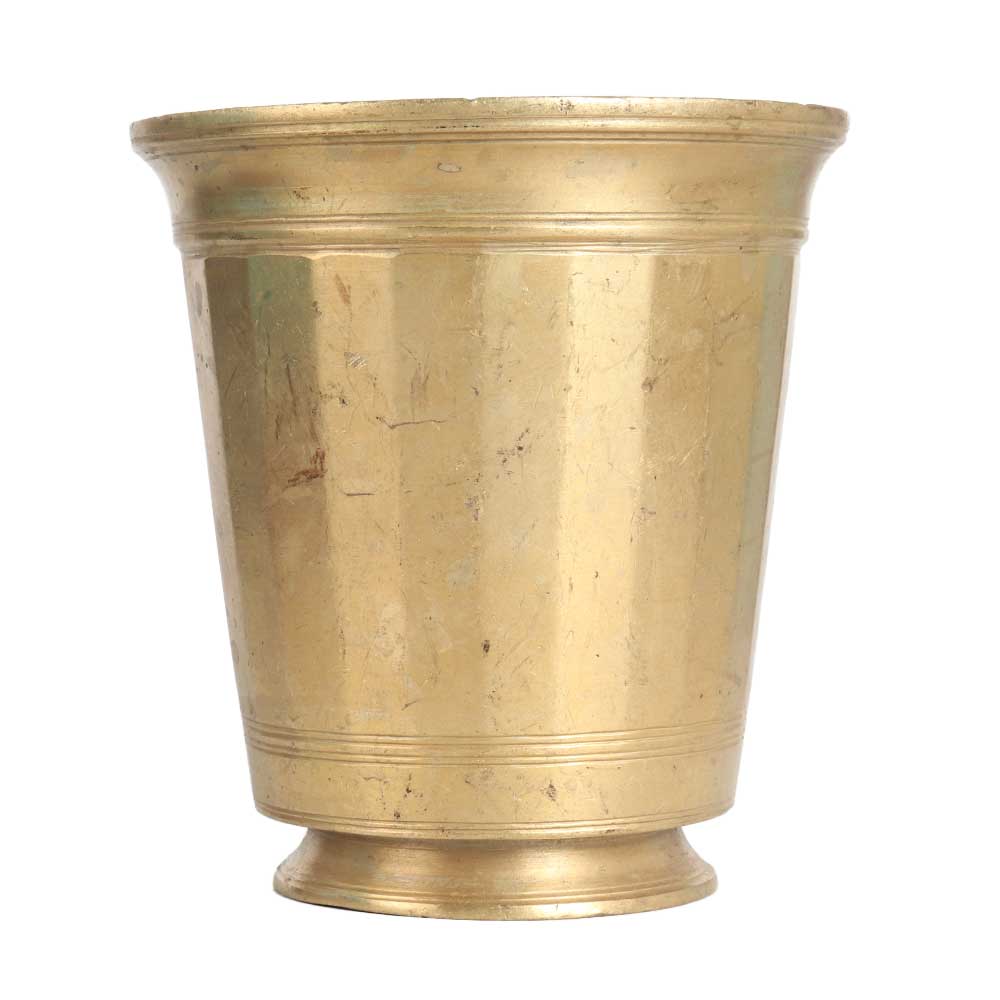 A shiny glass to decorate your home or office, made of high quality brass. An incredible handcrafted cup that will be an eye catcher. Display this piece in an exhibition, museum or vintage collection and it will be a focal point of attraction for visitors. Buy this handcrafted cup online from our website for hassle-free delivery to your doorstep. It is made of high quality brass and has a shiny golden finish that adds an alluring look to the interior. It is made by professional Indian craftsmen from South India with their hands which makes it a perfect item to gift on special, festive and auspicious occasion to your loved ones.