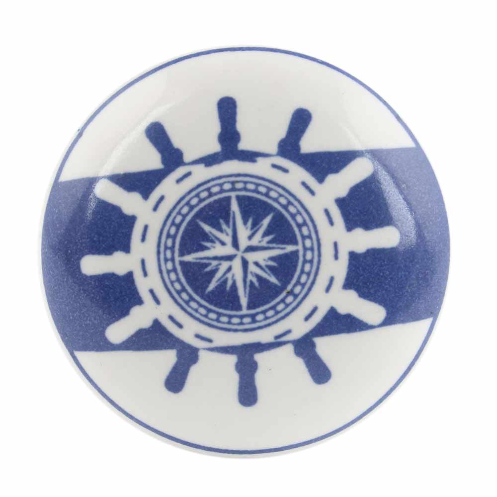 Ship Wheel Slate Blue Flat Ceramic Wine Bottle Stopper. Zinc Alloy Wine Bottle Stopper with Attractive Jute Bag Packaging.