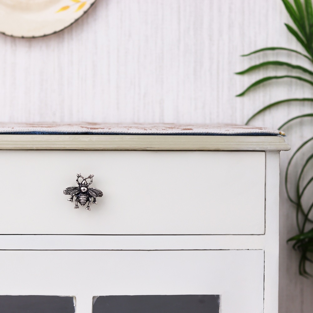 The intricately designed bee is made from sturdy aluminium and boasts a sleek silver finish. Its elegant yet playful appearance makes it a standout addition, perfect for both modern and rustic settings. Whether placed in a kitchen, bedroom, or living area, this knob infuses character and charm into your furniture.