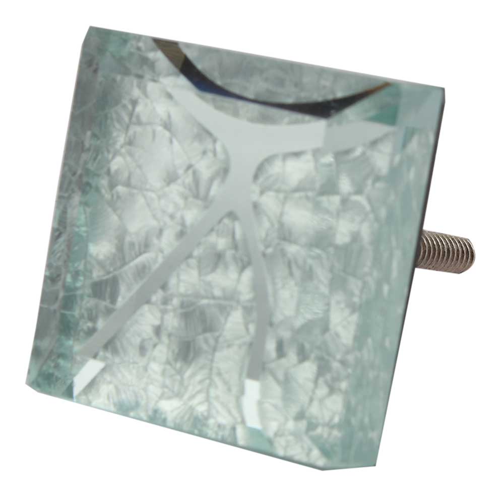 Silver Crackle Square Cut Flat Glass Knobs. Ideal for Drawer, Dresser, Cabinet, Wardrobe, Cupboard and almirah