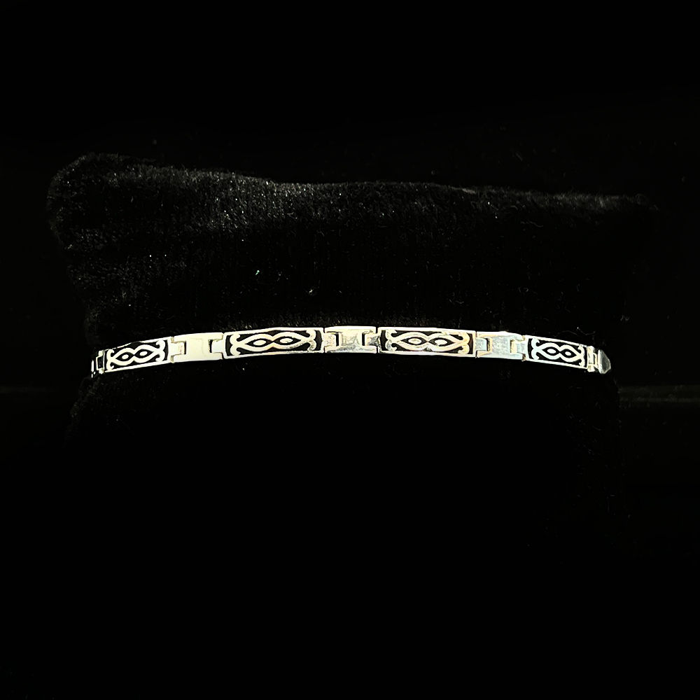 This silver enamel aesthetic bracelet is created for men who value refined expression through detailed form. The design balances artistic surface work with a composed structure suited for everyday wear. Crafted to reflect individuality and modern taste this bracelet is carefully packed and quality checked by Indianshelf.