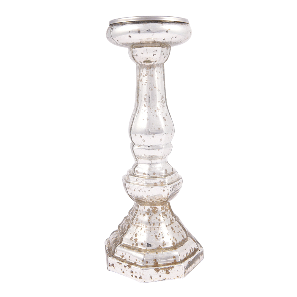Silver Glass Pillar Candle Holder.