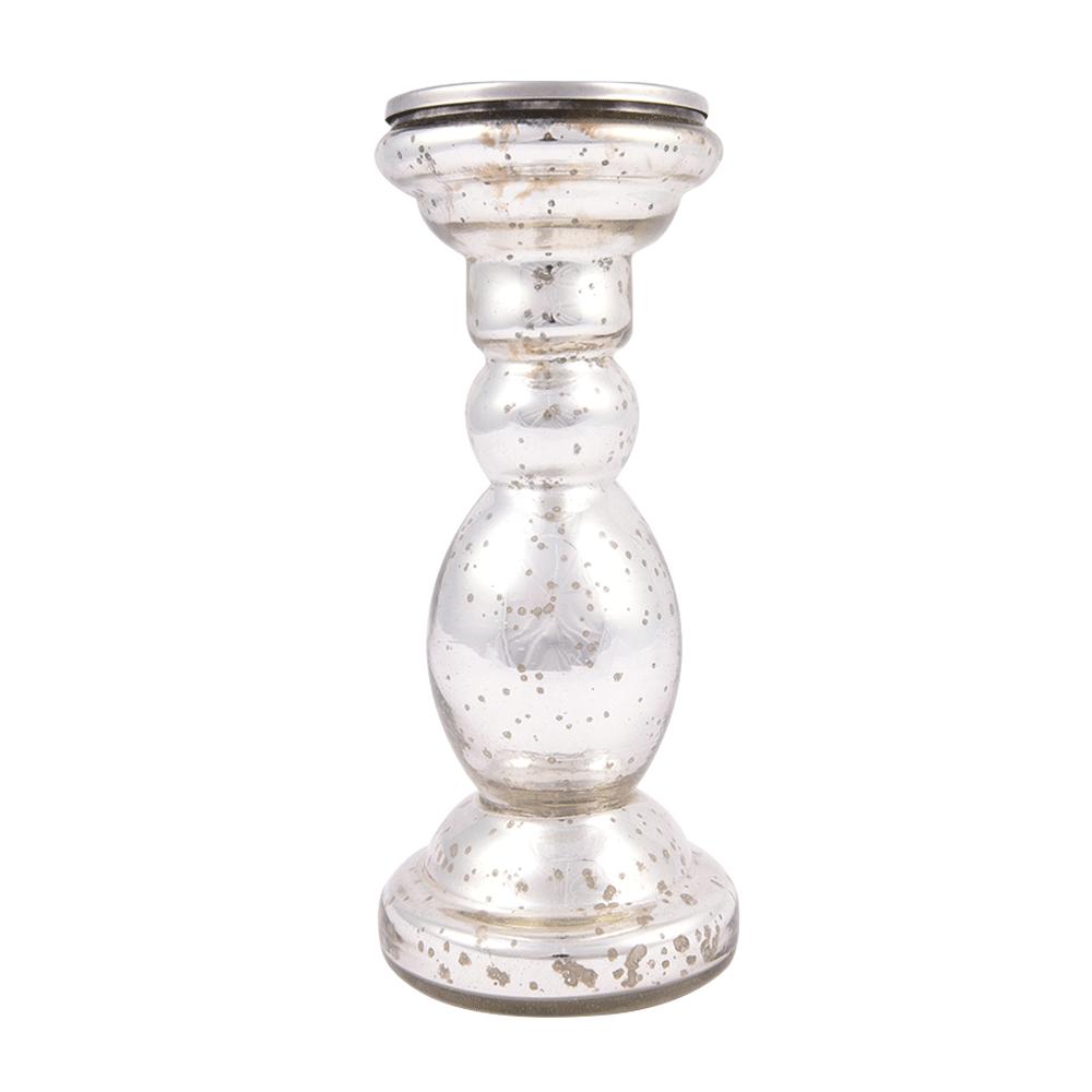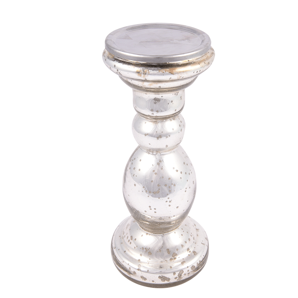 Silver Glass Pillar Candle Holder