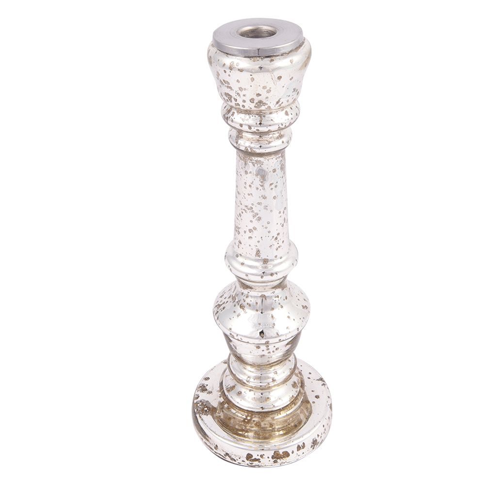 Silver Glass Pillar Candle Holder.