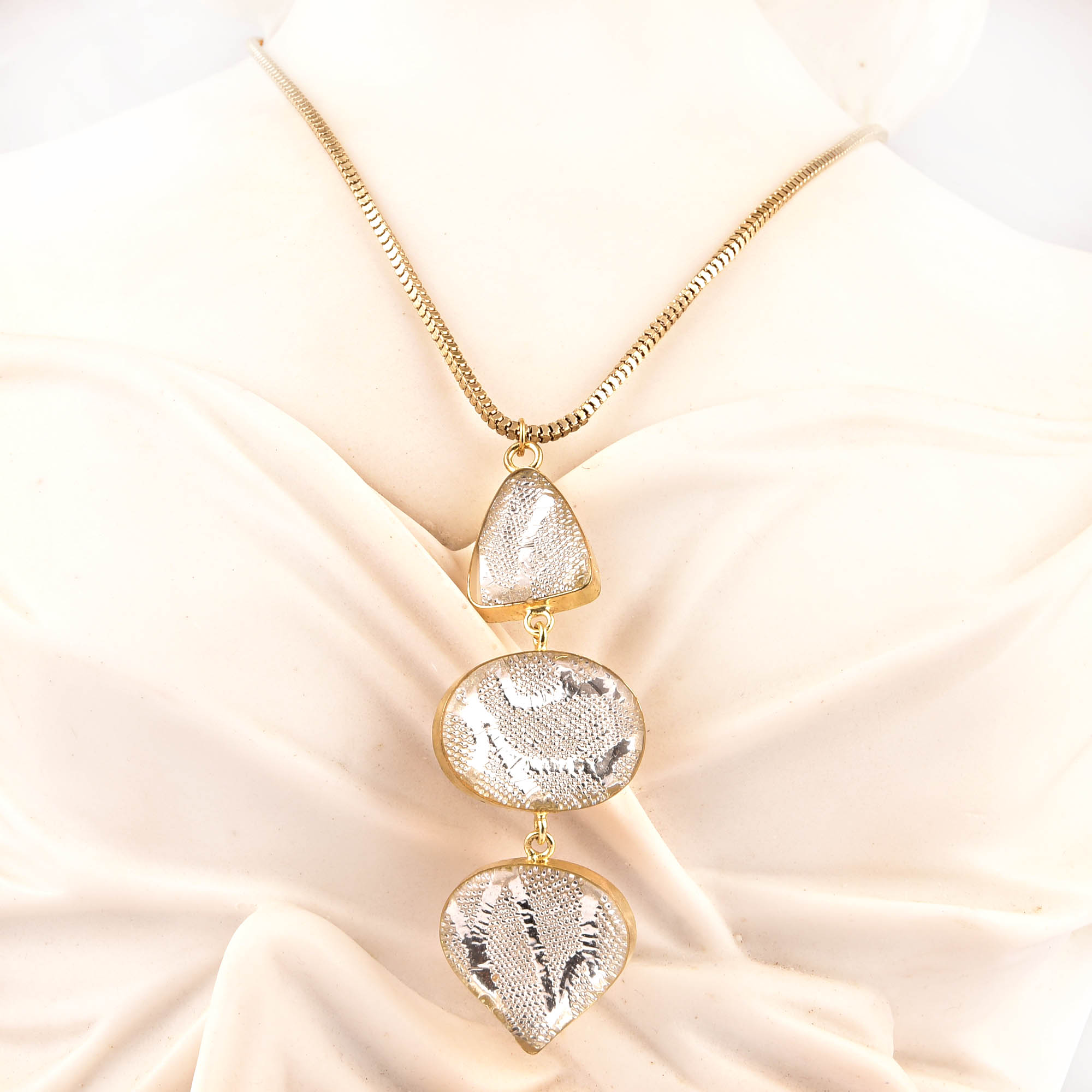 Silver Hanging Pendant Necklace New Beautiful Jewellery. Leather, Glass, with Brass Chain and Brass Clasp .