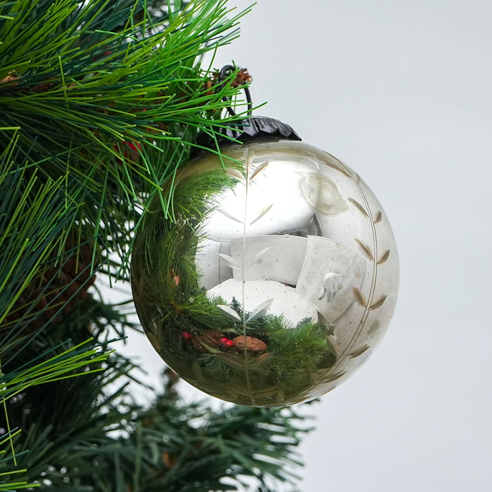 Pink Round Glass Christmas Ornament. Crafted from high-quality glass with a smooth glossy finish, this decorative bauble adds a classic and festive touch to Christmas trees, wreaths, and holiday displays.