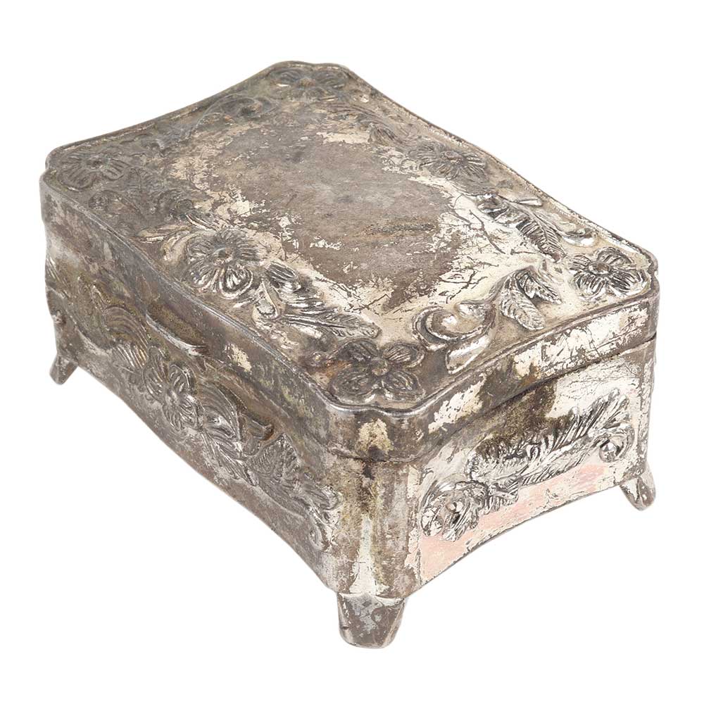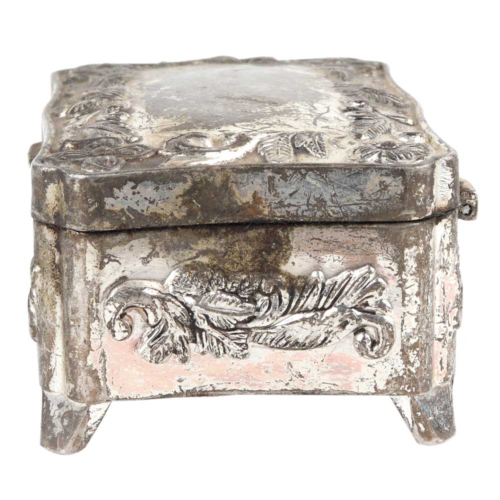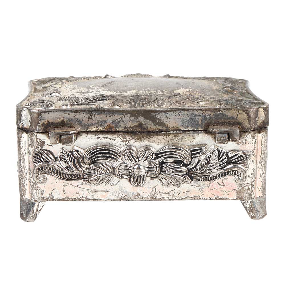 Silver Metal storage box with engraved floral design that can be used as a jewelry box, your can keep your important documents in it, accessories, tissue box etc. Diwali gift, anniversary gift, birthday gift, souvenir or showpiece.