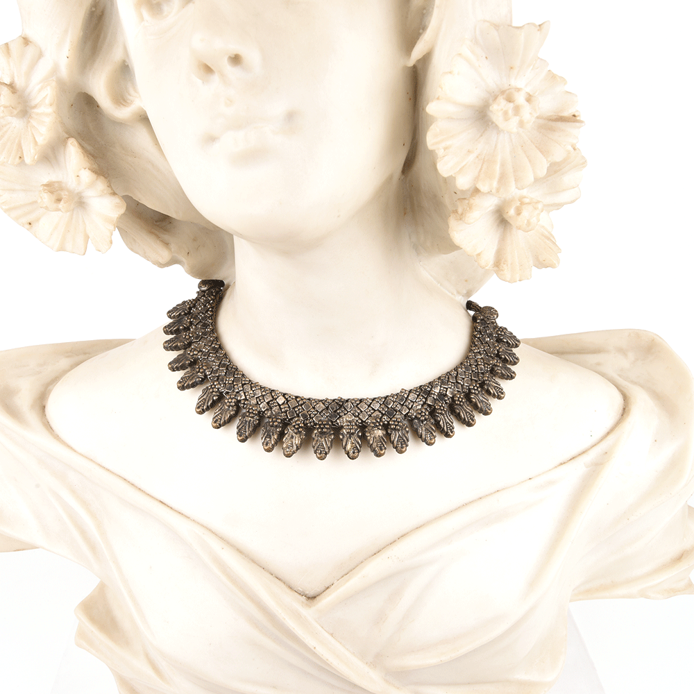 Celebrate the spirit of Indian craftsmanship with this Silver Oxidized Indian Tribal Choker Necklace, a statement piece inspired by traditional tribal adornments. Meticulously handcrafted from high-quality alloy, this choker captures the essence of heritage jewelry with its intricate oxidized detailing and bold silver tone. Designed to rest gracefully along the neckline, it brings a touch of cultural pride and vintage elegance to both ethnic and contemporary outfits.