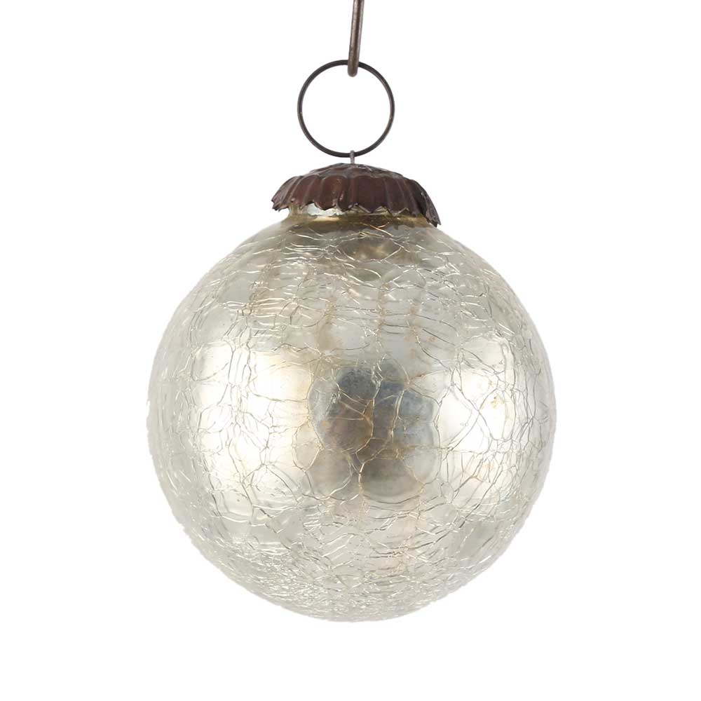 Silver Round Crackle Christmas Hanging