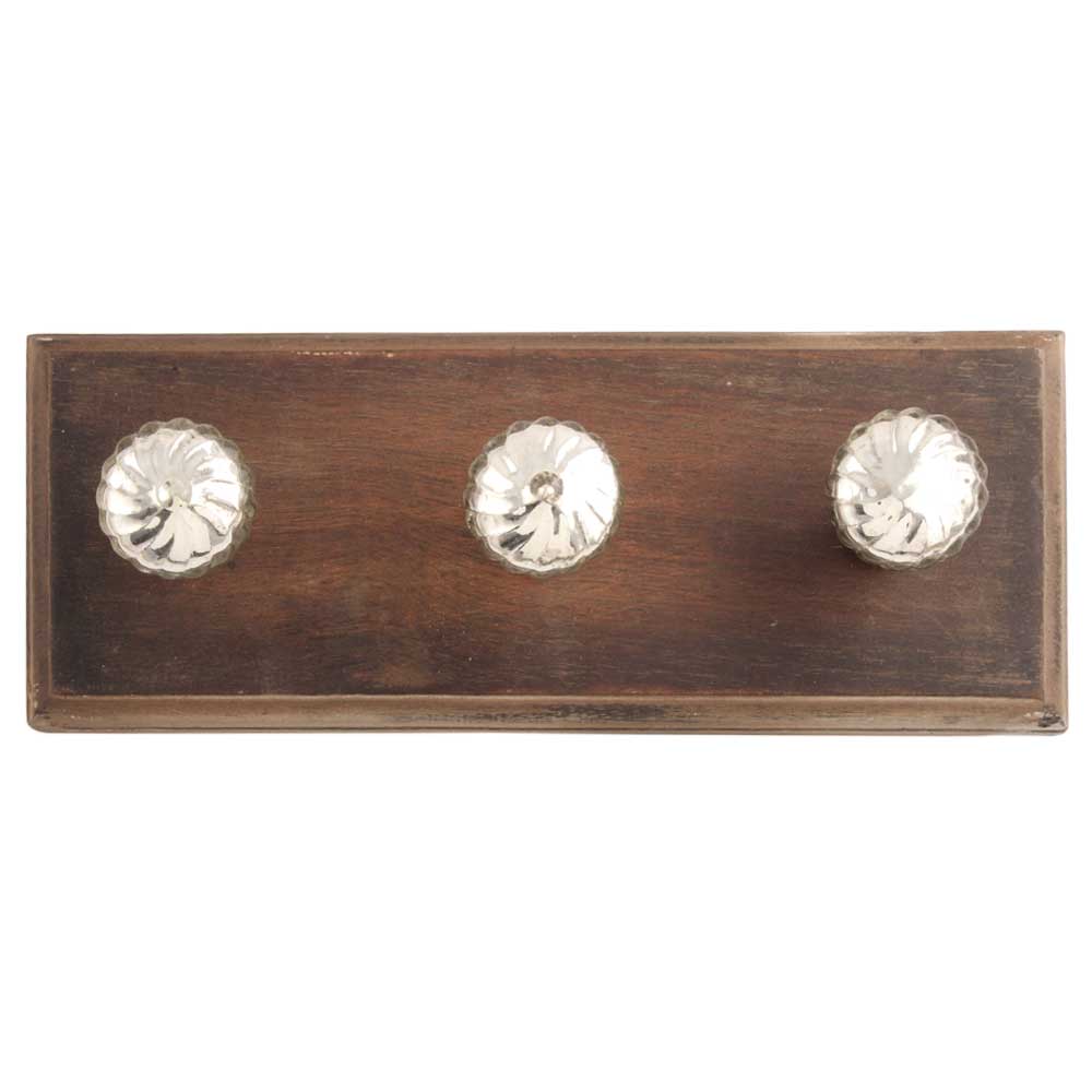 Silver Stripe Mercery Glass Wooden Hook. A Perfect Complement to the Soft Tone of the Wood are these White Traditional Hat and Coat Hook Made of Genuine Porcelain and Brass. It can be used to Hang Jewelry, Leashes, Towels, Scarves, Light Weight Sweaters, Caps etc.
