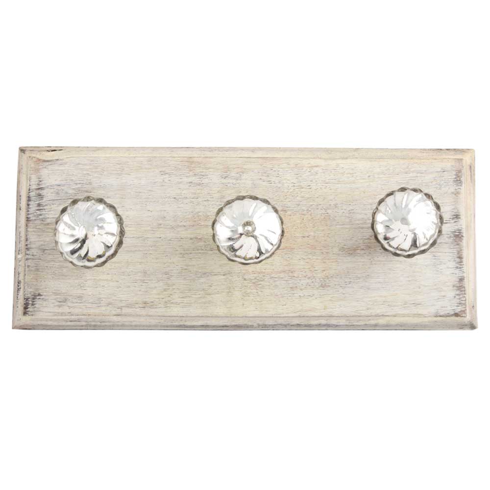 Silver Stripe Mercery Glass Wooden Hook. A Perfect Complement to the Soft Tone of the Wood are these White Traditional Hat and Coat Hook Made of Genuine Porcelain and Brass. It can be used to Hang Jewelry, Leashes, Towels, Scarves, Light Weight Sweaters, Caps etc.