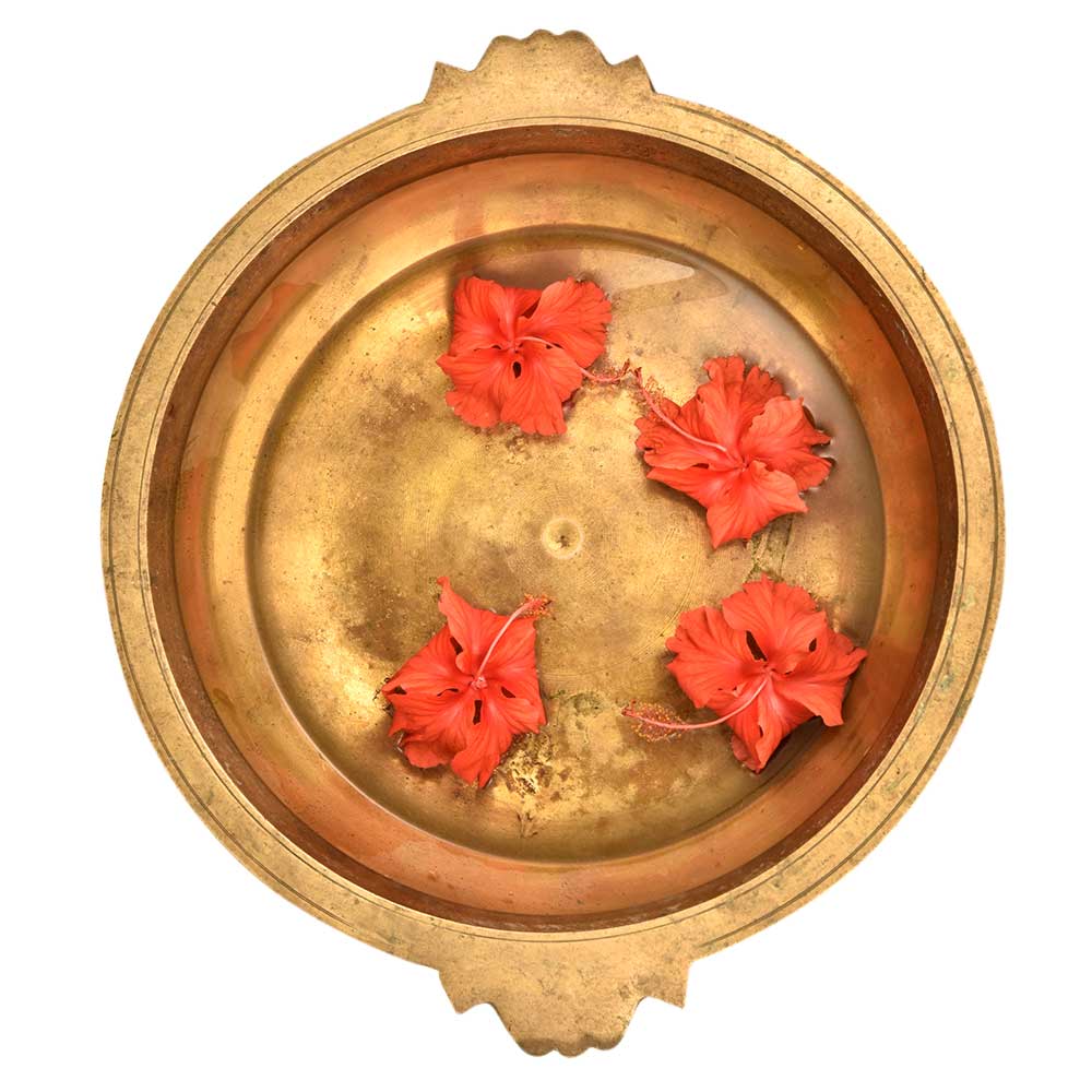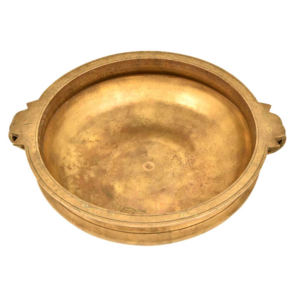 Solid Cast Brass Cooking Pot From India, Locally Referred to as An Urli, Makes a Great Sink or Floating Garden. It is Handmade by Local Artisans , the Design is Very Traditional and Reminds Us of the Old Days When Cooking Was Done in Chullah or Gas Burners.
