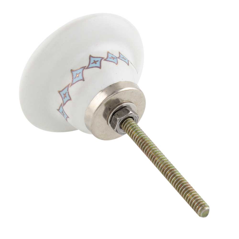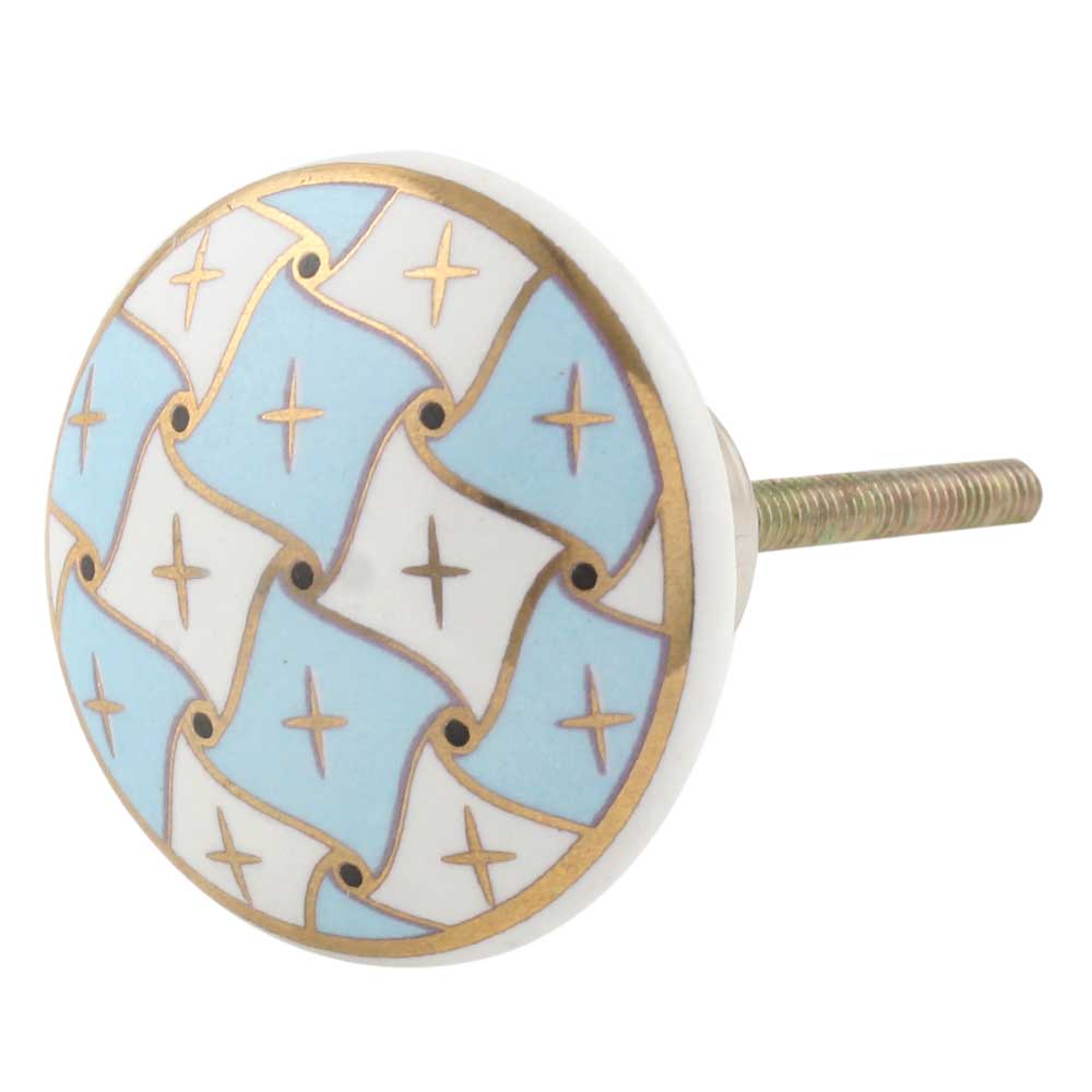 Elegant Sky Blue & White with Golden Checkerboard Cabinet Knob