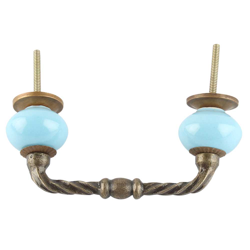Sky Blue Ceramic Cut Bridge Handles. Ideal for Drawer, Dresser, Cabinet, Wardrobe, Cupboard and Almirah etc.