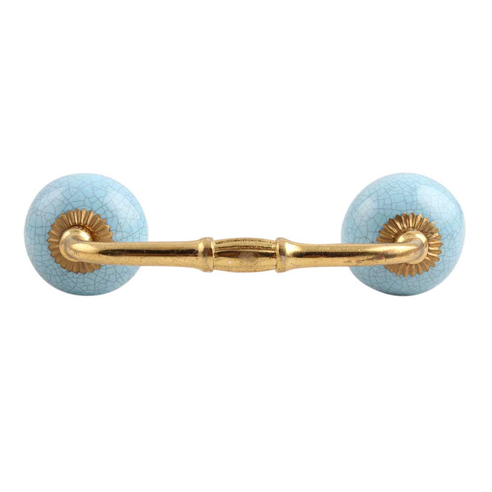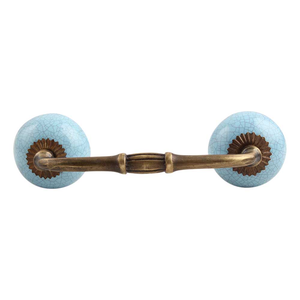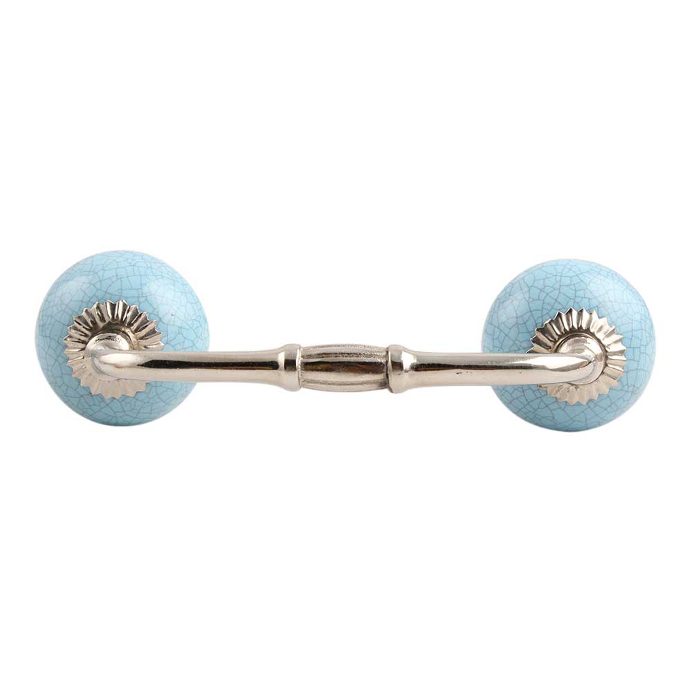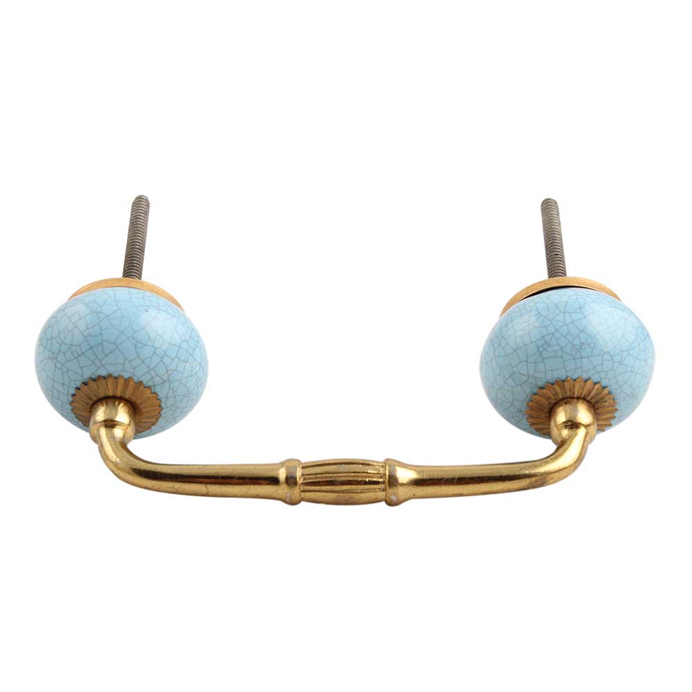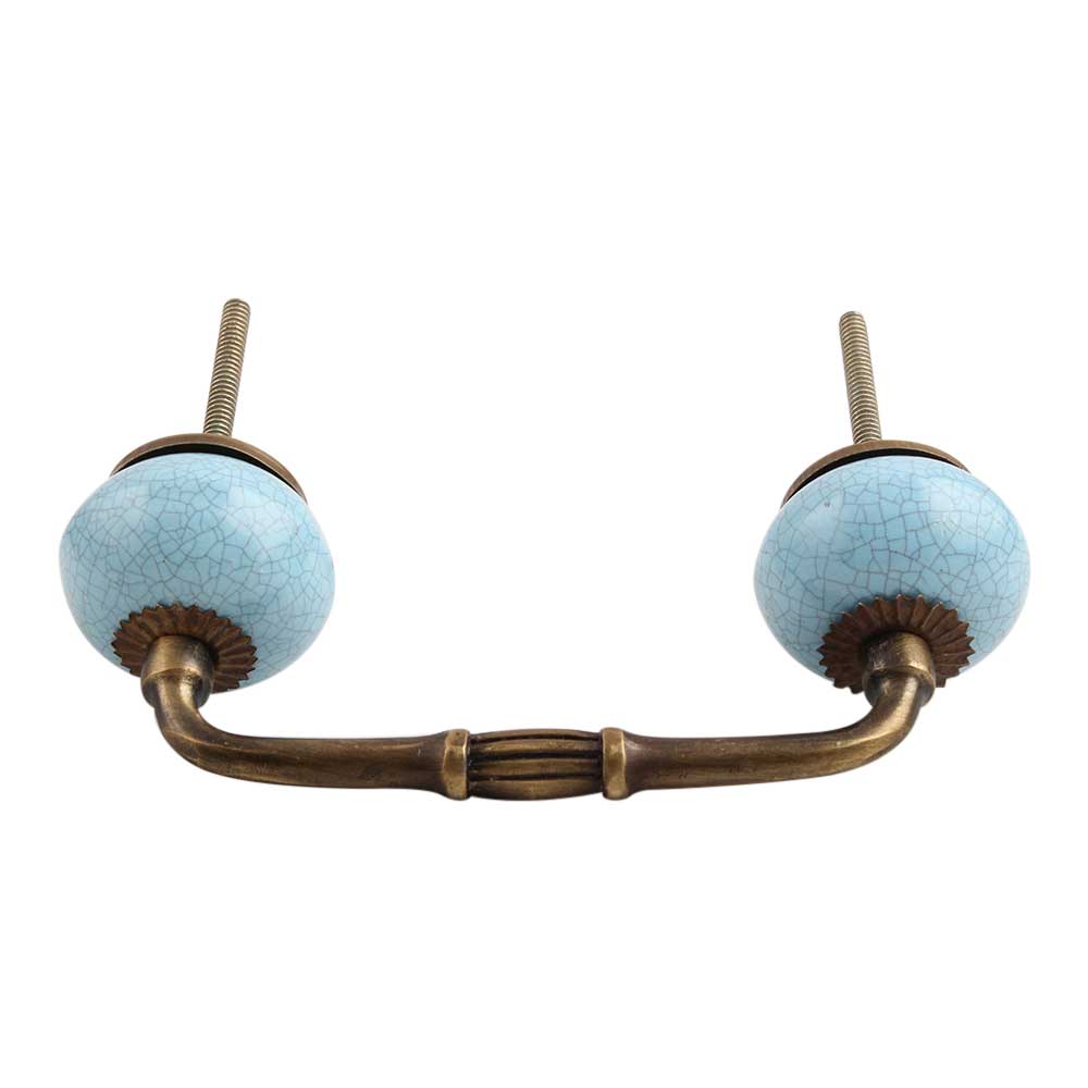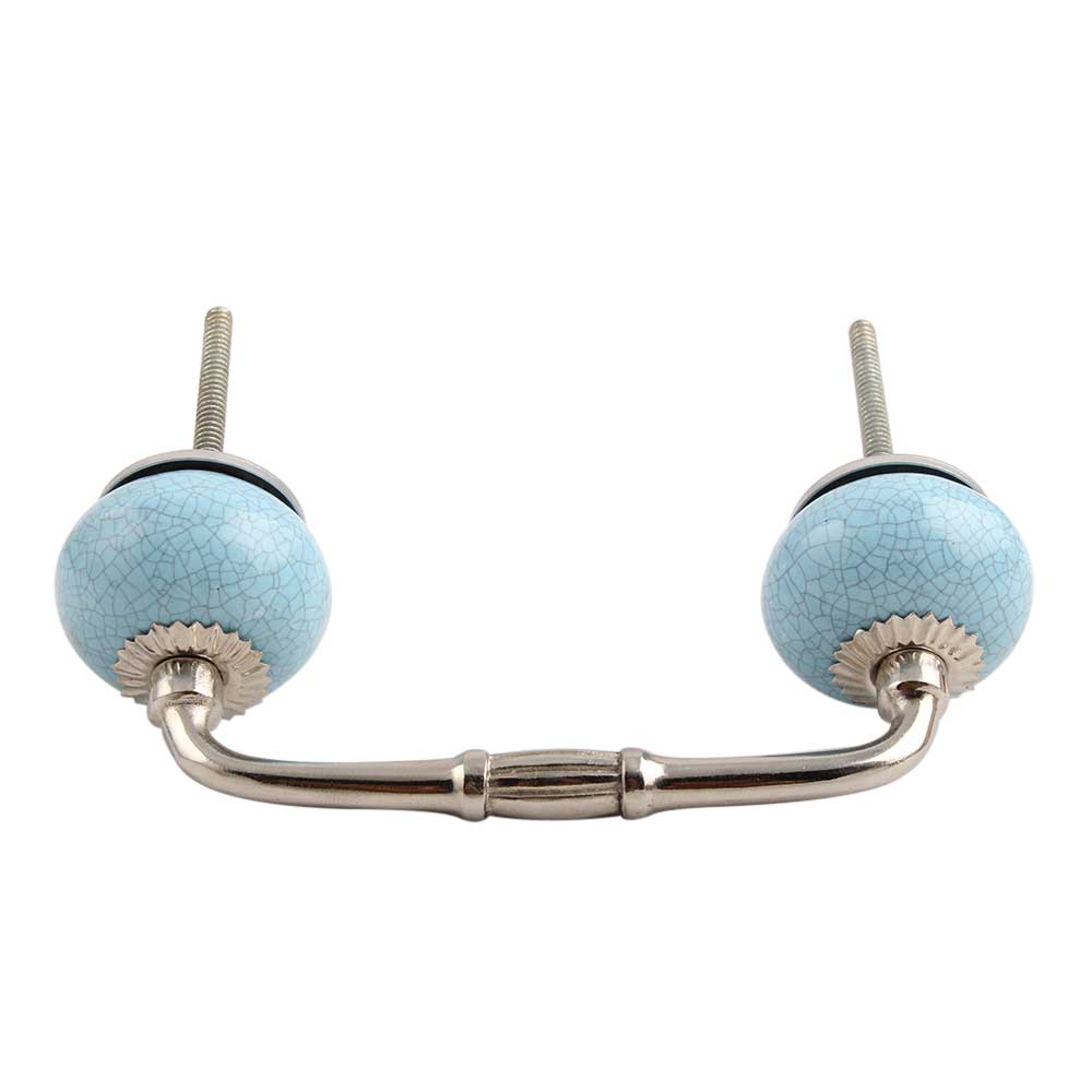 Sky Blue Crackle Ceramic Bridge Handle. Ideal for Drawer, Dresser, Cabinet, Wardrobe, Cupboard and Almirah.