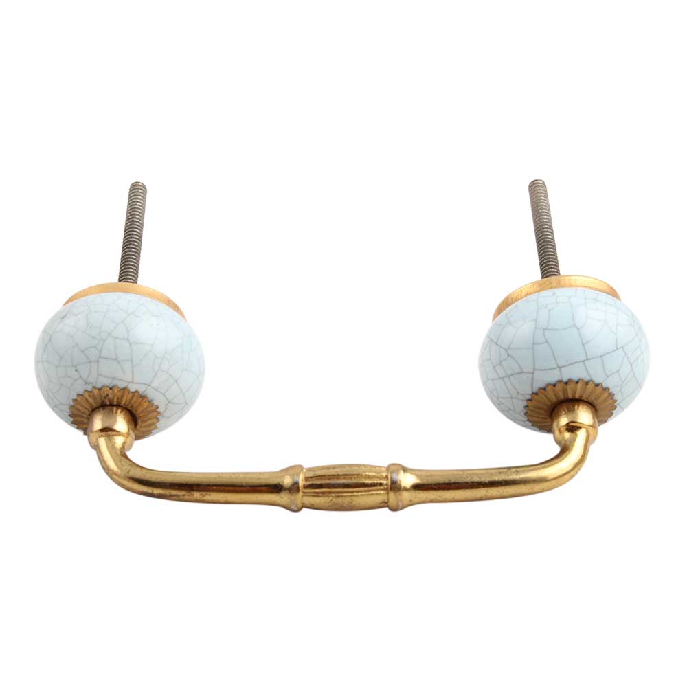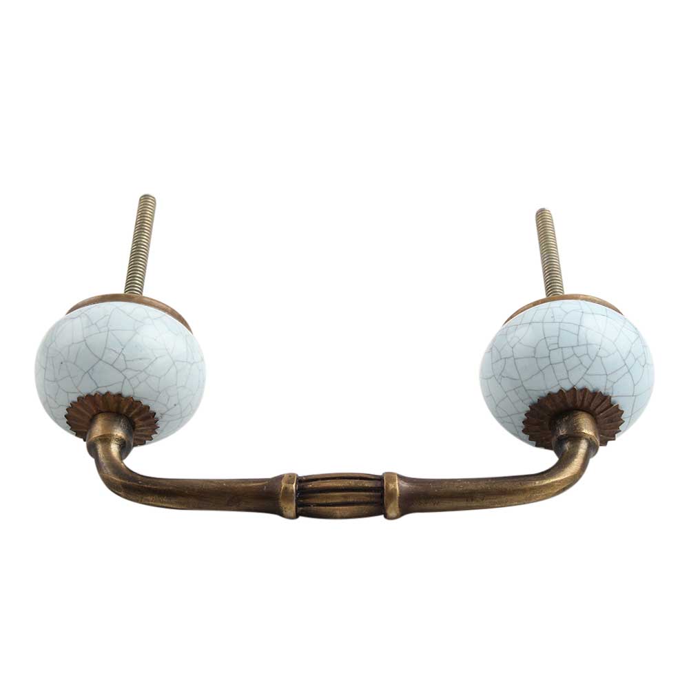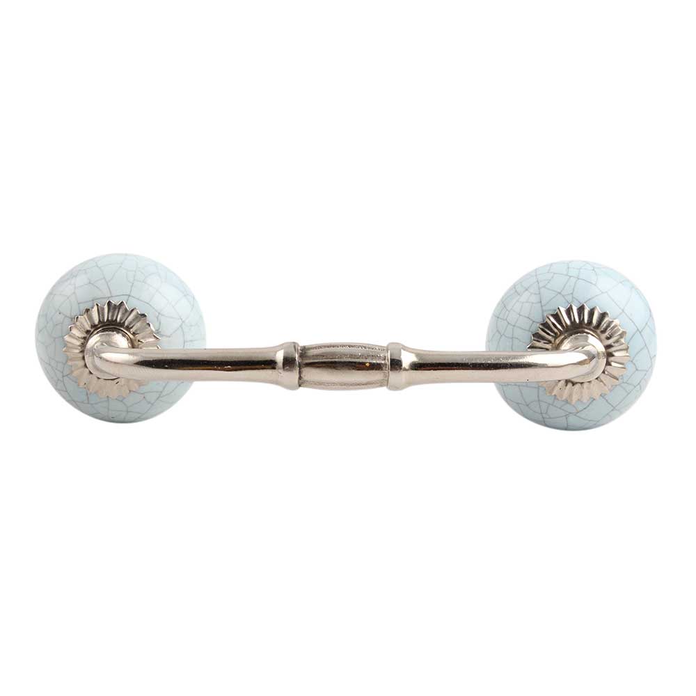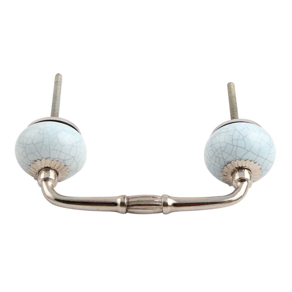 Sky Blue Crackle Ceramic Bridge Handle. Ideal for Drawer, Dresser, Cabinet, Wardrobe, Cupboard and Almirah.