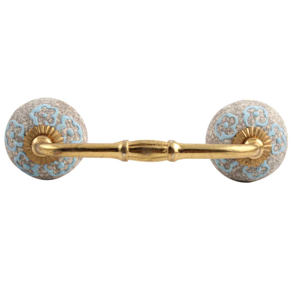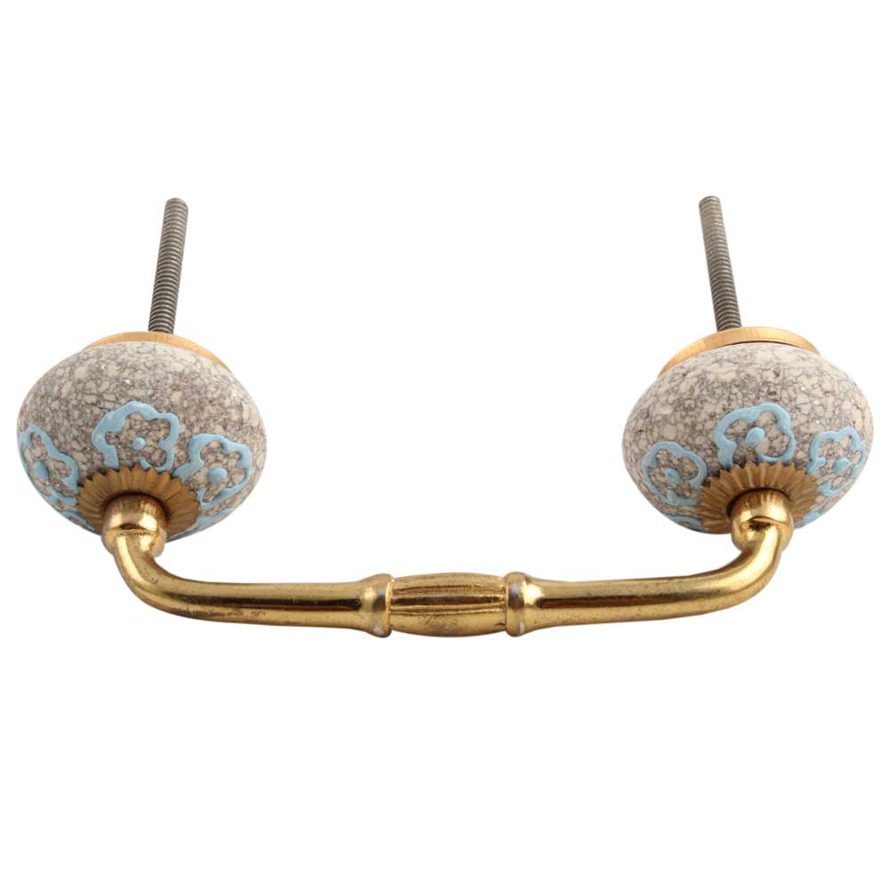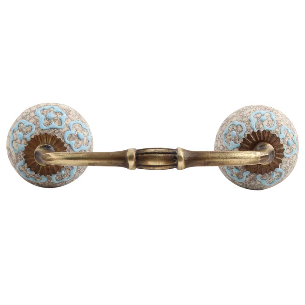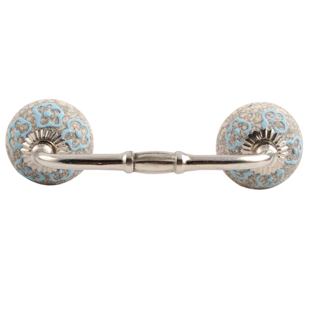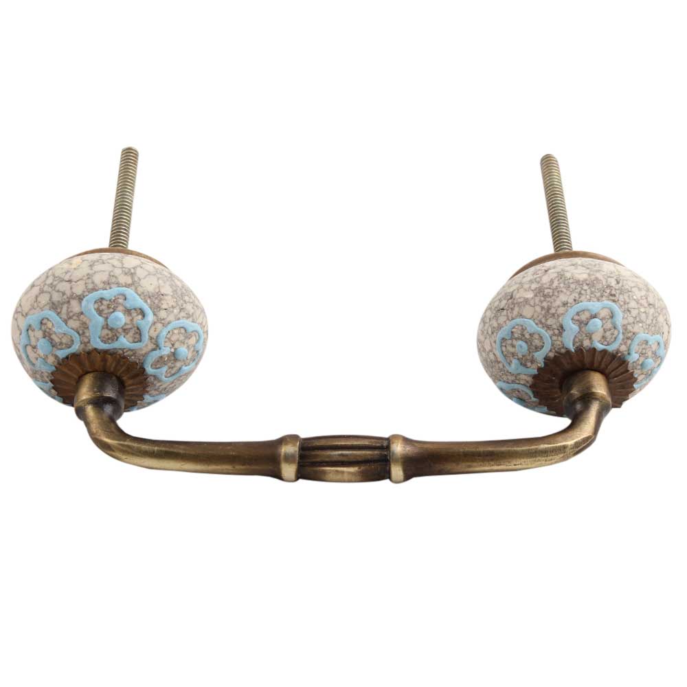 Sky Blue Floral Crackle Ceramic Bridge Handle. Ideal for Drawer, Dresser, Cabinet, Wardrobe, Cupboard and Almirah etc.