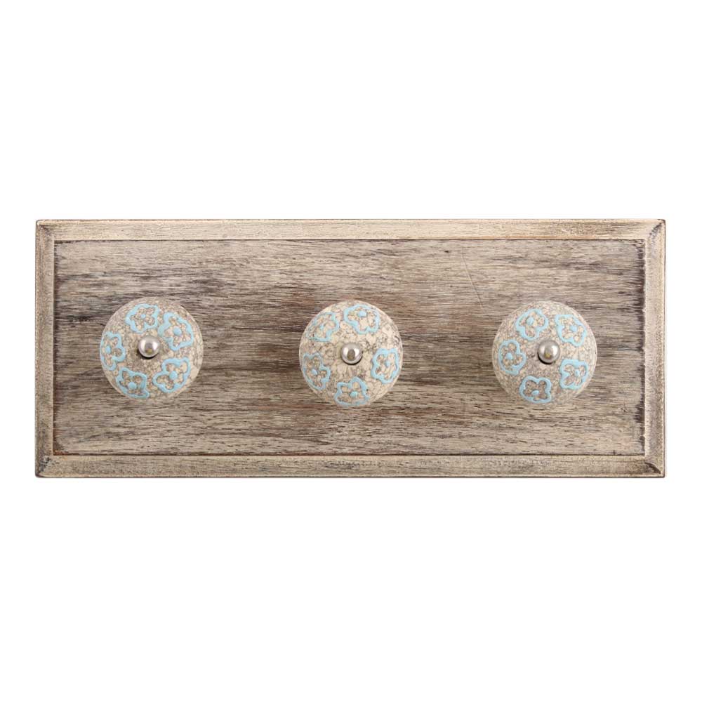 Sky Blue Floral Crackle Ceramic Wooden Hook. A Perfect Complement to the Soft Tone of the Wood are these White Traditional Hat and Coat Hook Made of Genuine Porcelain and Brass. It can be used to Hang Jewelry, Leashes, Towels, Scarves, Light Weight Sweaters, Caps etc.