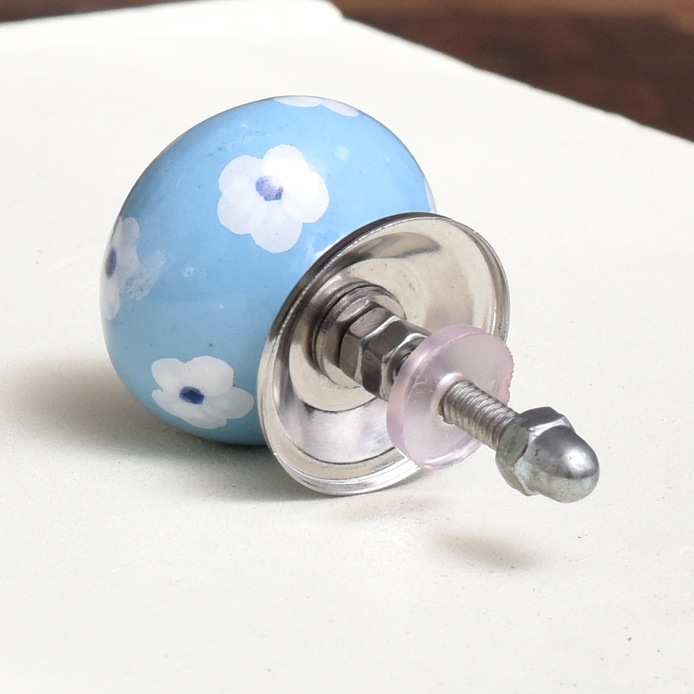 Sky Blue Flower Ceramic Round Knob. Ideal for kitchen cabinets, kitchen drawers, dining room, bed room, chest drawers, dressing tables, almirah