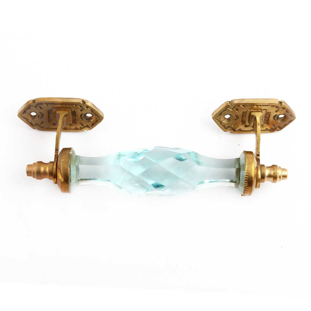 Sky Blue Glass Fine Diamond Cut Handle. Ideal for Drawer, Dresser, Cabinet, Wardrobe, Cupboard and Almirah.