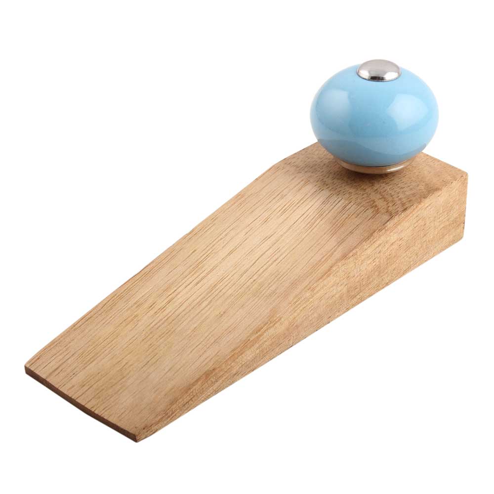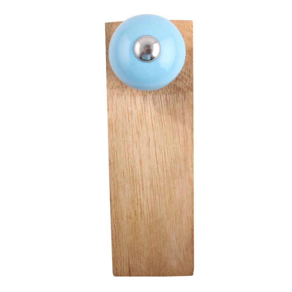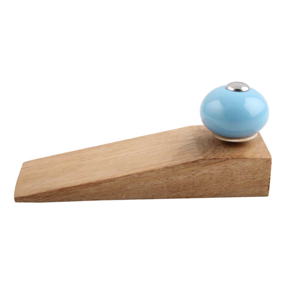 Handmade Ceramic and Wooden Door Stopper.Wooden Door Stopper with a Ceramic Knob to Carry it Easily. This Wooden Door Stopper has Glue Dots under it to Ensure that it does not Slip. It is Handmade by the Craftsmen of India and this Innovative Door Stopper won't Disappoint You.